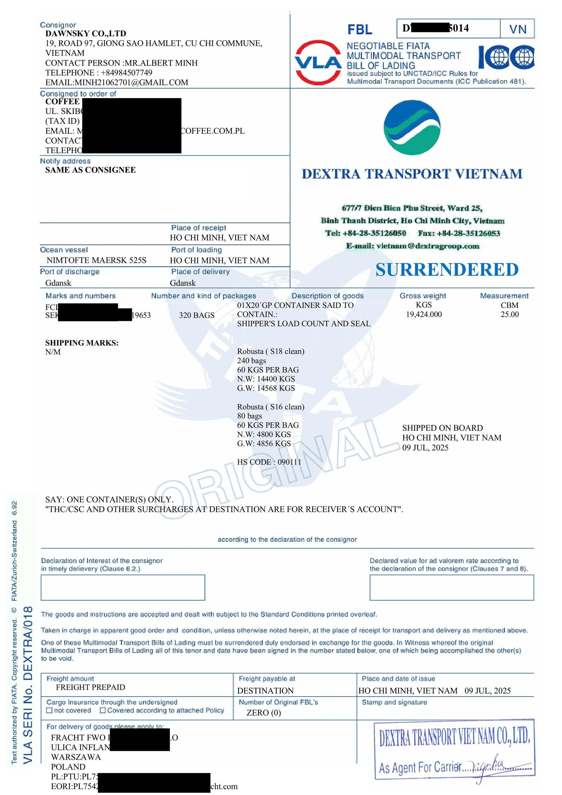 After more than 5 years of operation, DAWNSKY has built a stable sourcing network in major coffee-growing regions such as Lam Dong, Dak Lak, and Gia Lai. We have also established a wide customer network across international markets, including Japan, South Korea, the Middle East, and Europe.