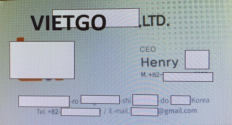 Vị khách hàng đến từ Hàn Quốc - Ông Henry là CEO công ty ██████████ có trụ sở tại Hàn Quốc. Là một công ty thương mại chuyên nhập khẩu và kinh doanh nhiều mặt hàng đồ dùng gia đình trên thị trường Hàn Quốc.