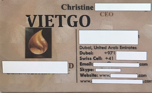 Bà Christine hiện đang là chủ một mô hình kinh doanh cá nhân, chuyên cung cấp và kinh doanh các sản phẩm khai thác năng lượng tự nhiên tại Dubai và một số quốc gia lân cận. Gần đây bà đang có nhu cầu nhập khẩu sản phẩm Quả Bơ và Quả Nhãn (mời Quý vị tham khảo thông tin chi tiết về đơn hàng TẠI ĐÂY và TẠI ĐÂY). Trái cây là sản phẩm mà bà kỳ vọng sẽ gặt hái được nhiều thành công, và bà đang dành thời gian tìm hiểu thêm về các sản phẩm nông sản ở thị trường Việt Nam. Chia sẻ thêm với VietGo, Bà Christine mong muốn tìm được mối quah hệ hợp tác lâu dài hơn là hợp đồng chỉ một lần. Bà cũng bày tỏ niềm yêu thích đối với cảnh vật và con người nơi đây.