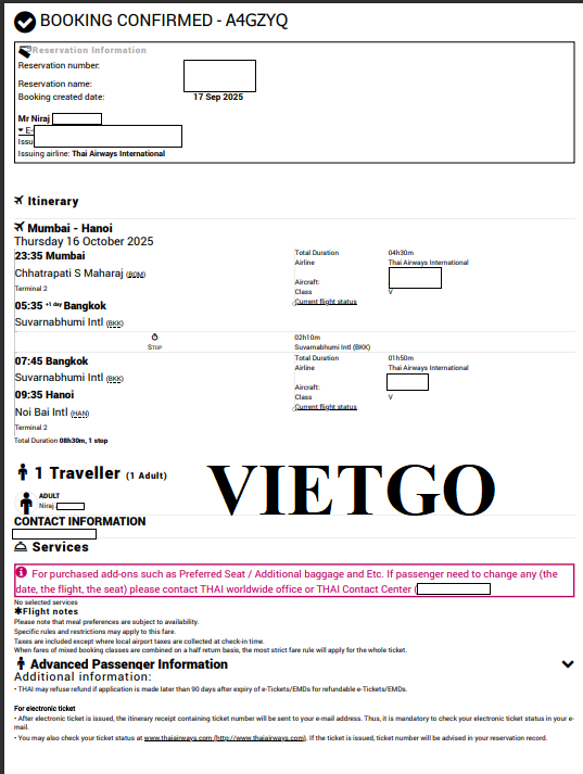 - 16/10/2025: Ông Niraj lên chuyến bay khởi hành từ sân bay quốc tế Mumbai, Ấn Độ vào lúc 11h35p tối đến BangKok, Thái Lan.
