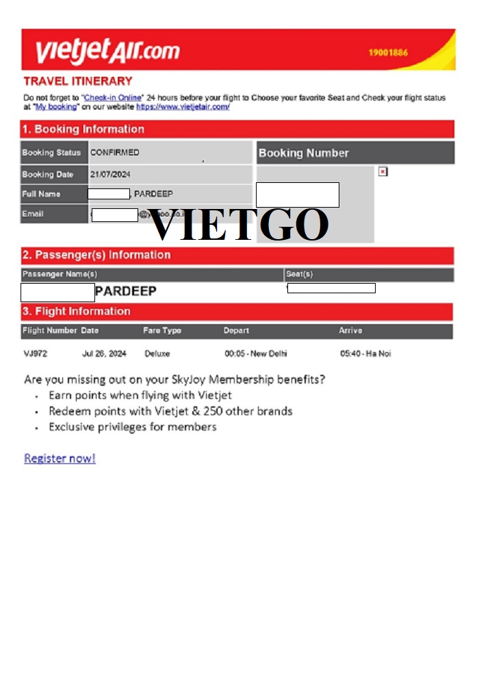 VIETGO xin gửi tới Quý nhà cung cấp thông tin về lịch trình chuyến thăm Việt Nam của ông Pardeep, một vị khách hàng tiềm năng đến từ Ấn Độ.