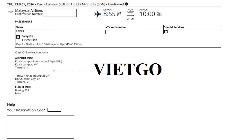Hình ảnh thông tin chuyến bay của vị khách hàng