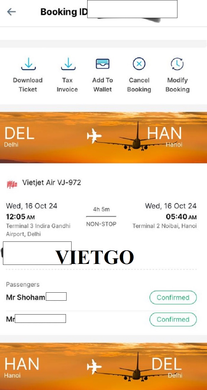 - Ngày 23/10/2024, vị khách hàng sẽ bay về Ấn Độ kết thúc lịch trình công tác