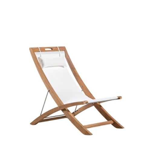 With clean lines and sleek styling, the teak deck chair features a solid teak frame with stainless steel fittings and outdoor mesh sling that is waterproof, fade-resistant and won't stretch or tear. Available in multiple outdoor mesh color options, these teak deck chairs have a generous 18 in. wide seat (21 in. between the legs) and adjust to three height positions. Pair with our folding stool for the utmost in comfort.