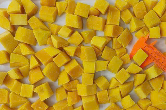 Frozen Yellow Keo Mango is made from carefully selected, naturally ripened fresh mangoes. The fruit is sliced and quickly frozen using advanced technology to preserve its natural flavor, vibrant color, and nutritional value. This is a convenient and safe product ideal for food processing, beverages, desserts, and year-round export. The company's export markets are by air to European countries, Korea, and Japan.