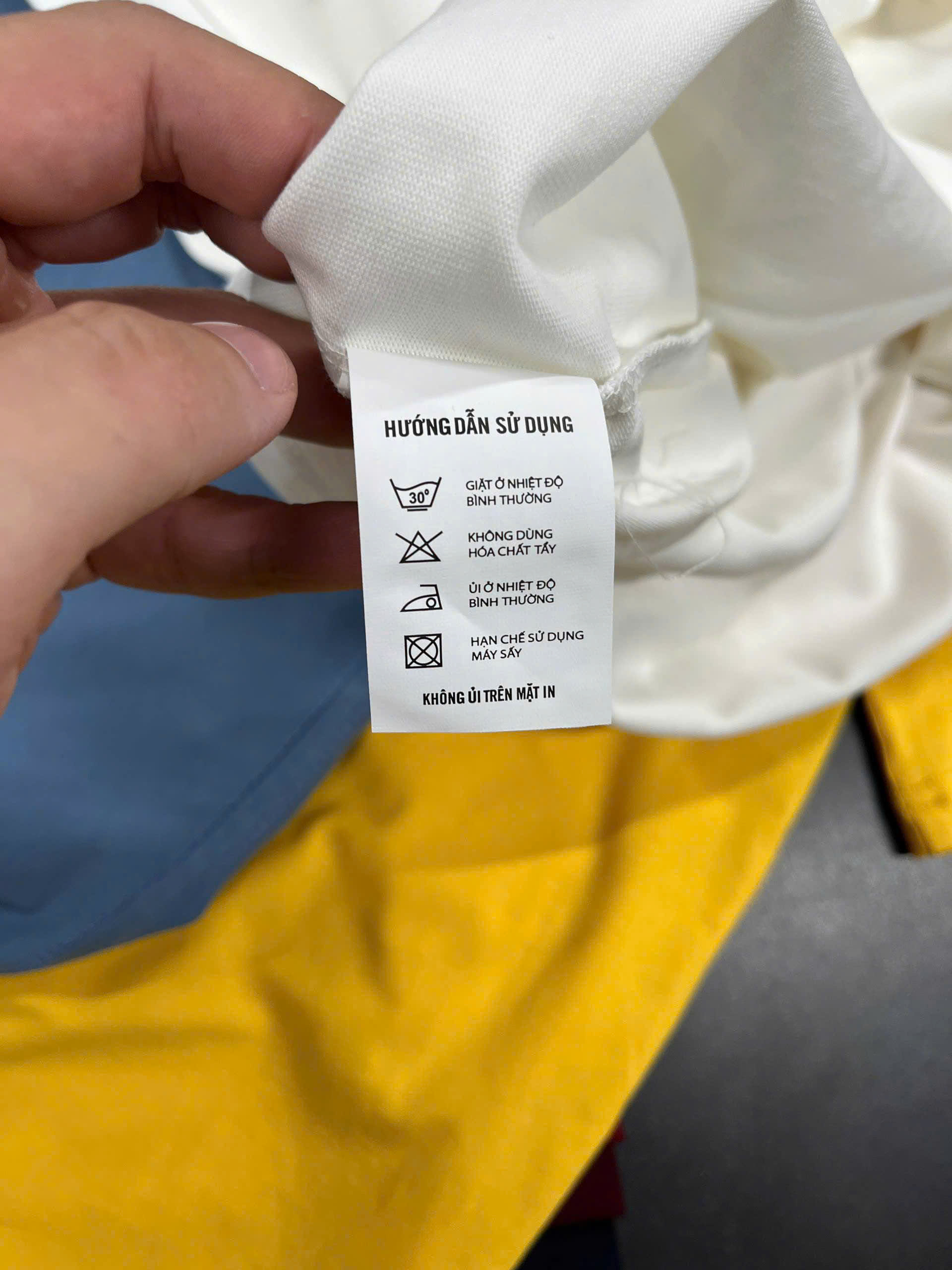 - 100% cotton or cotton blend (e.g., cotton + polyester)