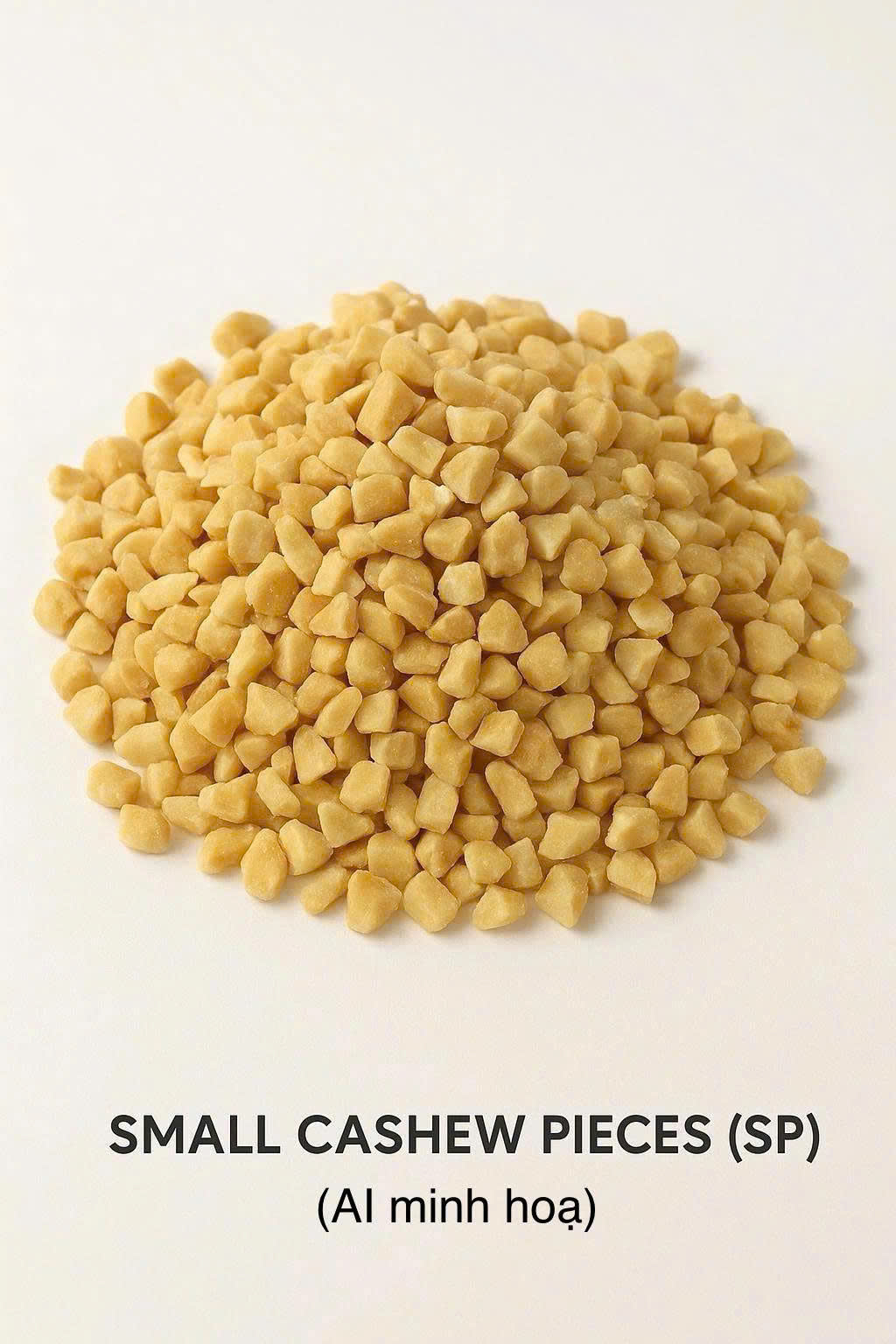 Our Small Cashew Pieces (SP) offer the same rich flavor and nutritional value as whole kernels, but at a much more economical price. With a convenient size of 3–7mm, SP is widely used for producing cashew milk, cashew butter, vegan cheese, granola, bakery fillings, cereals, snack bars, and as toppings in both Asian and Western cuisines. It is also ideal for oil pressing due to its high natural oil content.
