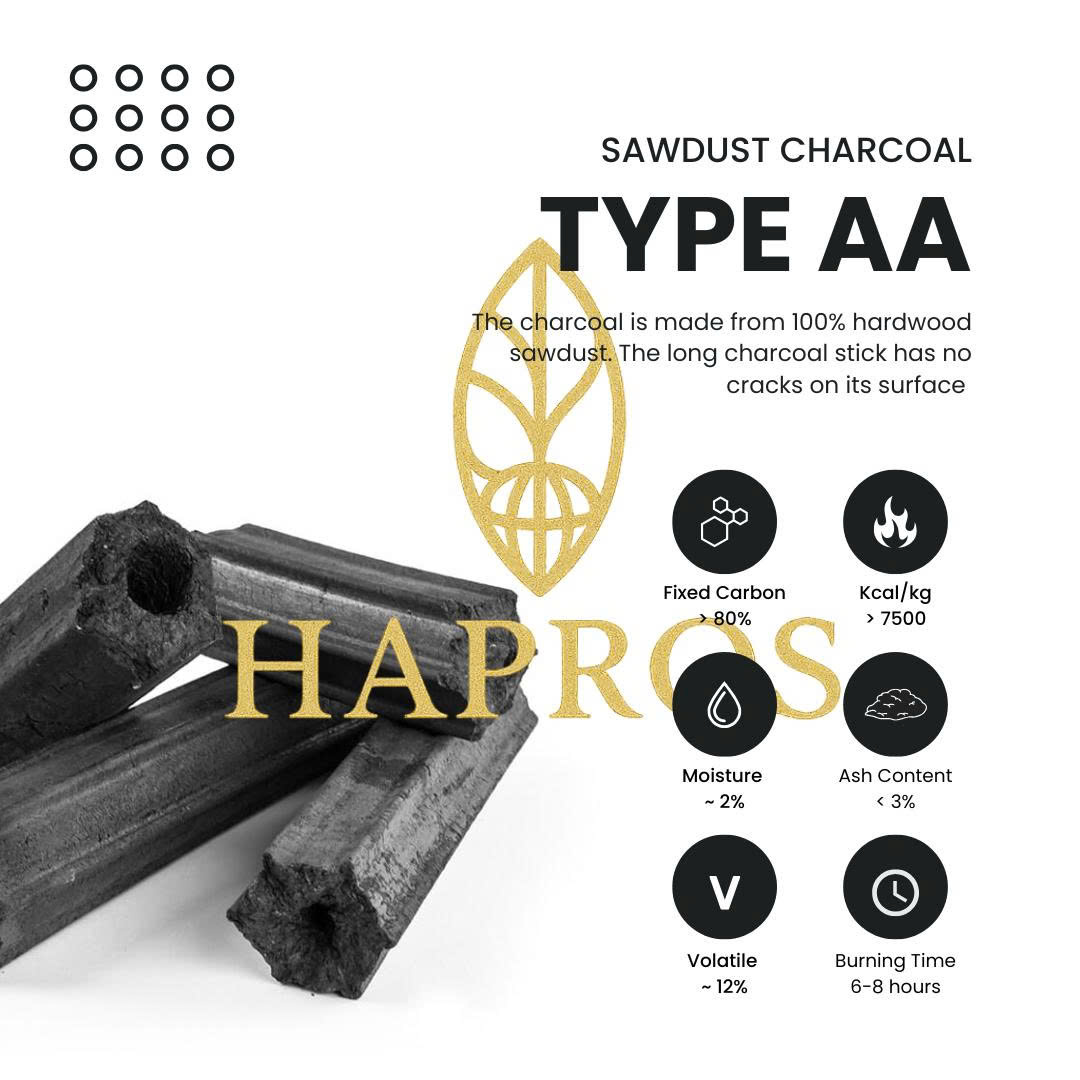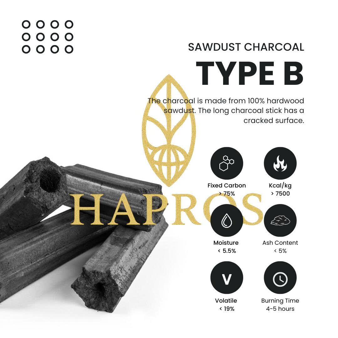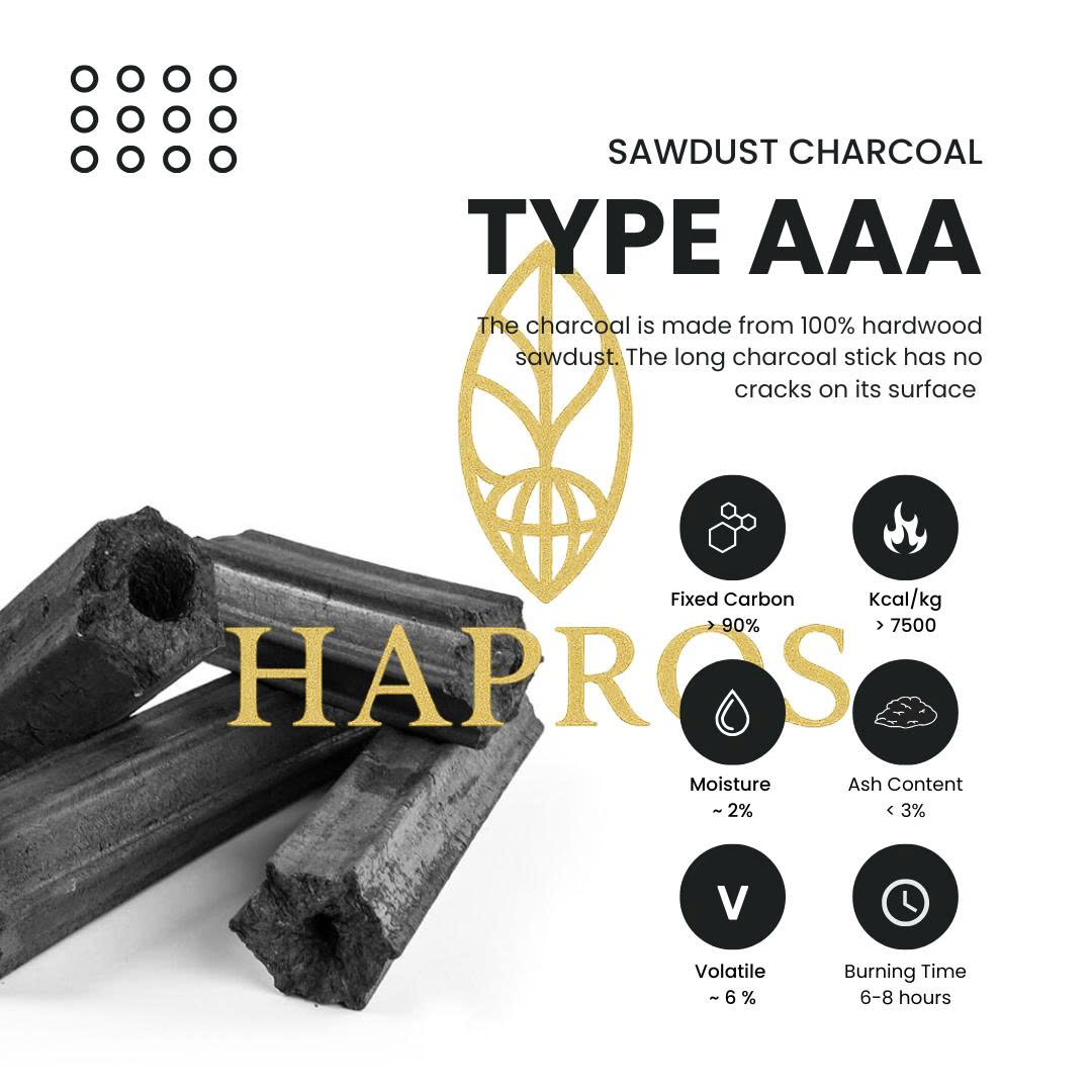 ông ty TNHH HAPROS là đơn vị thương mại uy tín chuyên cung cấp và xuất khẩu Than Mùn Cưa (Saw Dust Briquette Charcoal) chất lượng cao từ những nhà máy sản xuất đạt chuẩn tại Việt Nam. Sản phẩm được ép từ mùn cưa gỗ tự nhiên 100%, không hóa chất, thân thiện môi trường và đáp ứng các tiêu chuẩn nghiêm ngặt của thị trường quốc tế.