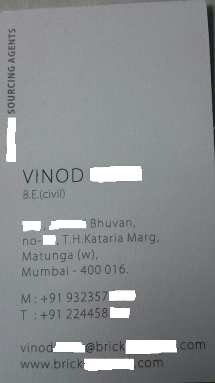 Đây là card visit của ông Vinod...