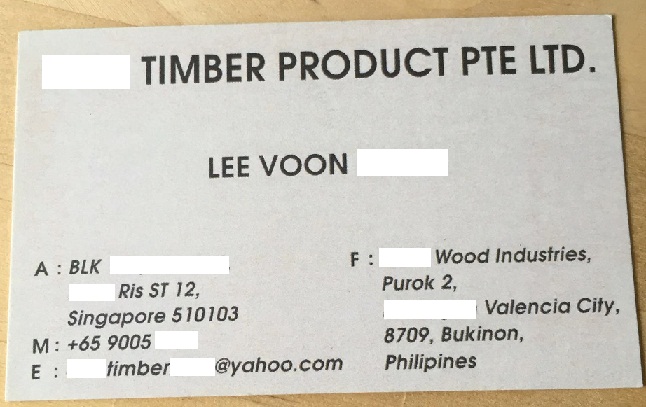 Tôi là Lee ██████████, Giám đốc Công ty ██████████ Timber Product Pte Ltd có trụ sở văn phòng chính tại ██████████ Ris, Singapore.