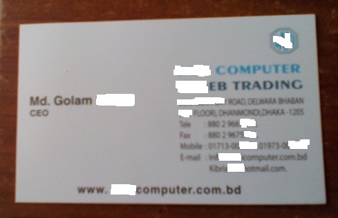 Đây là card visit của ông Golam ██████████