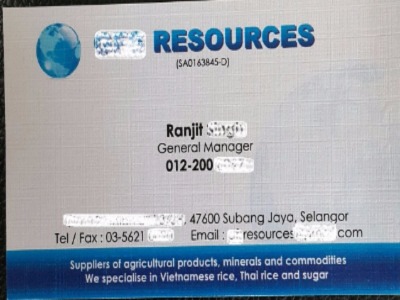 Tôi là Ranjit từ Công ty thương mại ██████████ Resources tại Subang Jaya, Malaysia.