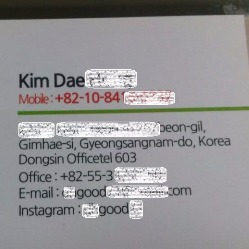 Địa chỉ: ██████████ 267 beon-gil, Gimhae-si, Gyeongsangnam-do, Korea