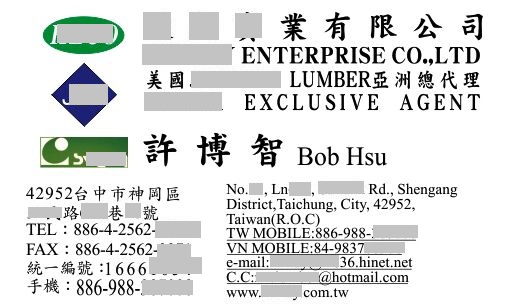 Email: ██████████@hotmail.com, ██████████hinet.net