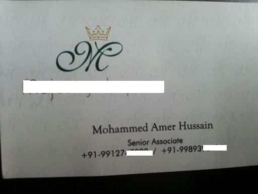 Tôi tên là Hussain, đại diện công ty M██████████x. Tôi gửi quý vị name card của tôi để quý vị tham khảo:
