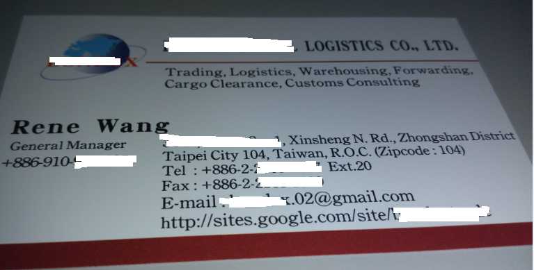 Tôi là Rene Wang, Giám đốc điều hành của ██████████ Logistic Co. Ltd, có trụ sở tại Đài Bắc, Đài Loan.