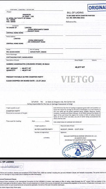 Qua những thương vụ trước, VIETGO đã từng xúc tiến cho ông Zaheer và nhận thấy công ty của ông là đối tác rất tiềm năng. VIETGO đưa ra B/L nhập khẩu đá dăm từ Hồng Kông và Oman của ông để quý vị yên tâm đây là khách hàng có kinh nghiệm xuất nhập khẩu rất nhiều lần, khách hàng thật chứ không phải người mới hỏi mua lần đầu.