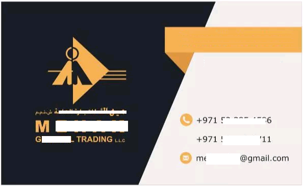Tôi là Tanveer, đại diện công ty M██████████ Trading LLC. Tôi gửi quý vị name card của tôi: