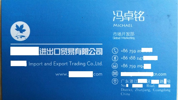 Tôi là Michael ██████████, đại diện Công ty ██████████ Import and Export Trading Co Ltd có trụ sở tại thành phố Trạm Giang, Trung Quốc.
