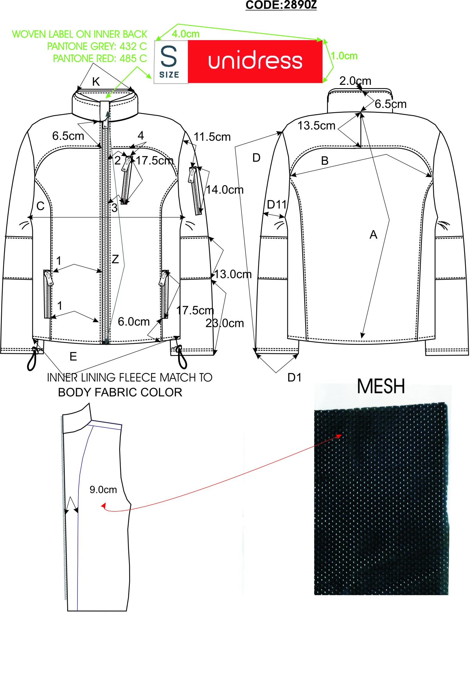 Chất liệu: 95%poly 5% lycra 100Dx100D 300gr, thoáng khí, nhanh khô, bond with 100%poly microfleece 100D 144F 150gr