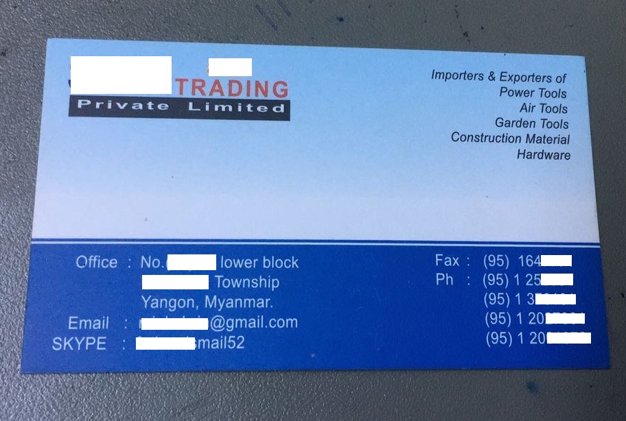Địa chỉ: No ████████████████████ Lower block, ██████████ Township Yangon, Myanmar