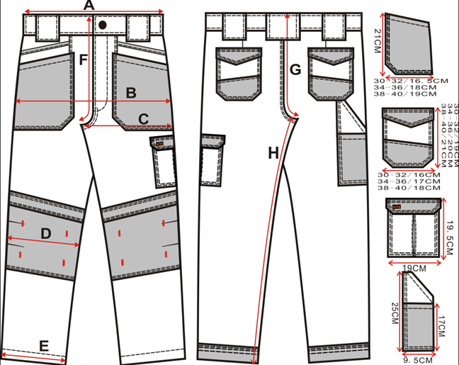 - Vải chính: vải sợi xoắn 65% polyester / 35% cotton màu xám, khối lượng vải: 235gsm