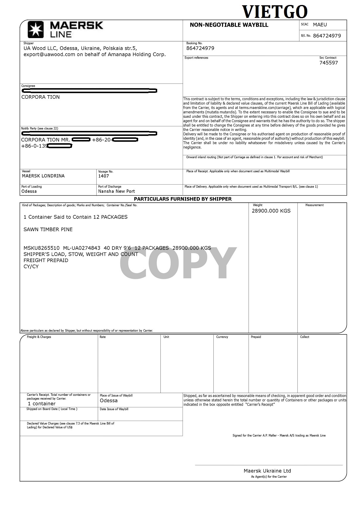 Qua những thương vụ trước, VIETGO nhận thấy công ty của ông Haiwen là đối tác rất tiềm năng. VIETGO đưa ra giấy tờ nhập khẩu gỗ thông xẻ từ nước khác của công ty ông để quý vị yên tâm đây là khách hàng đã từng nhập khẩu nhiều lần, khách hàng thật chứ không phải người mới hỏi mua lần đầu