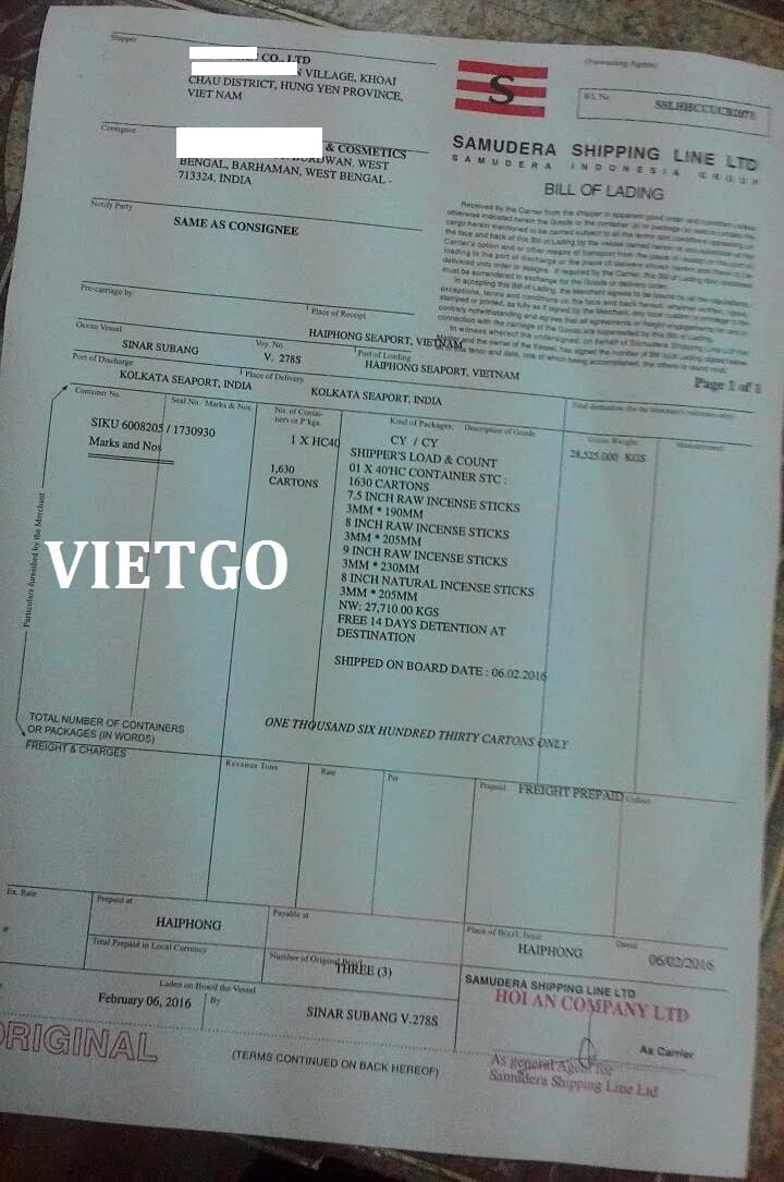 Qua những thương vụ trước, VIETGO đã từng xúc tiến cho ông Dilip ██████████ và nhận thấy công ty của ông là đối tác rất tiềm năng. VIETGO đưa ra B/L nhập khẩu hương từ Việt Nam của ông để quý vị yên tâm đây là khách hàng đã từng nhập khẩu nhiều lần, khách hàng thật chứ không phải người mới hỏi mua lần đầu.