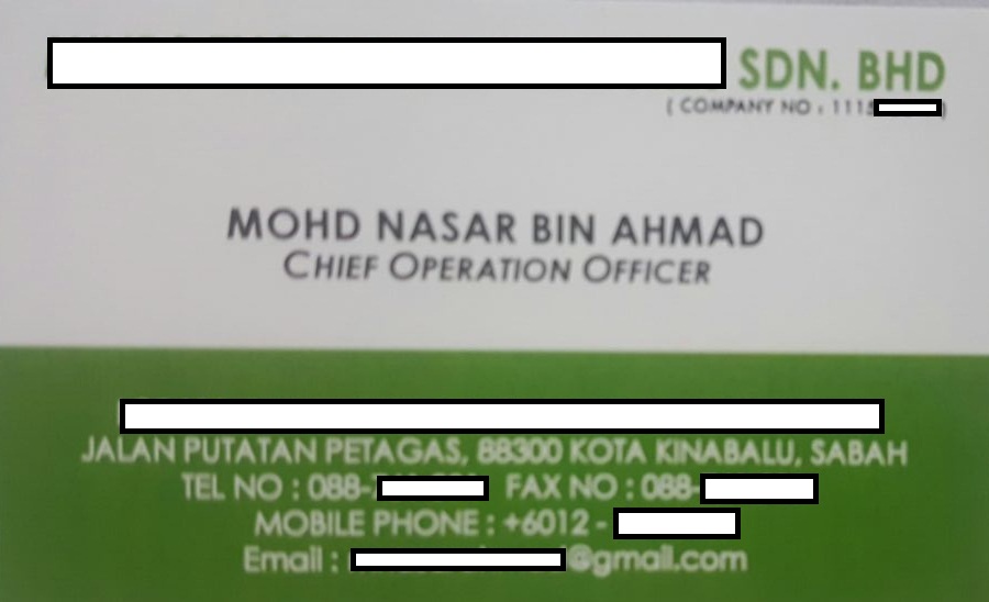 Card visit của Ông Mohd Ahmad