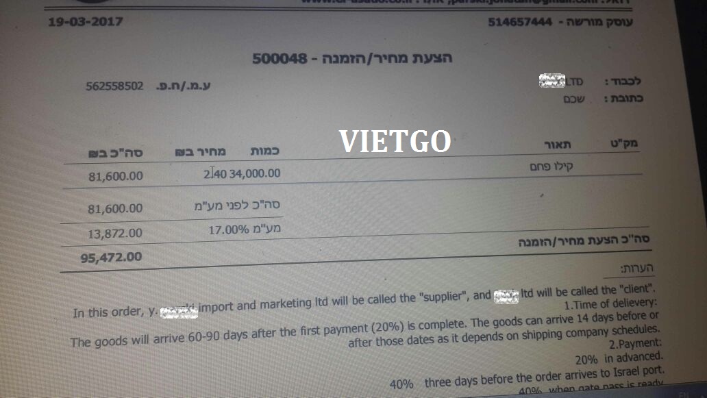 Đây là hóa đơn tôi đặt mua 2 container than từ Venezuela cách đây vài tuần