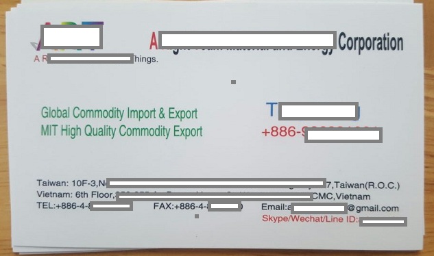Địa chỉ: 10F-3, ██████████ Taichung city, Taiwan