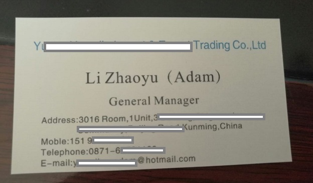 Tôi là Tổng Giám đốc công ty xuất nhập khẩu ██████████ Import & Export Trading Co Ltd, có trụ sở tại Kumming, thuộc tỉnh Vân Nam, Trung Quốc, rất gần với Việt Nam.