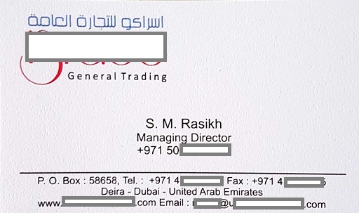 Danh thiếp của ông M.Rasikh