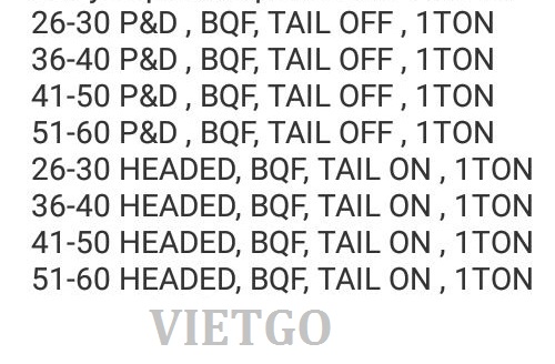 Hiện khách hàng của chúng tôi đang có nhu cầu mua tôm với đơn hàng chi tiết như sau