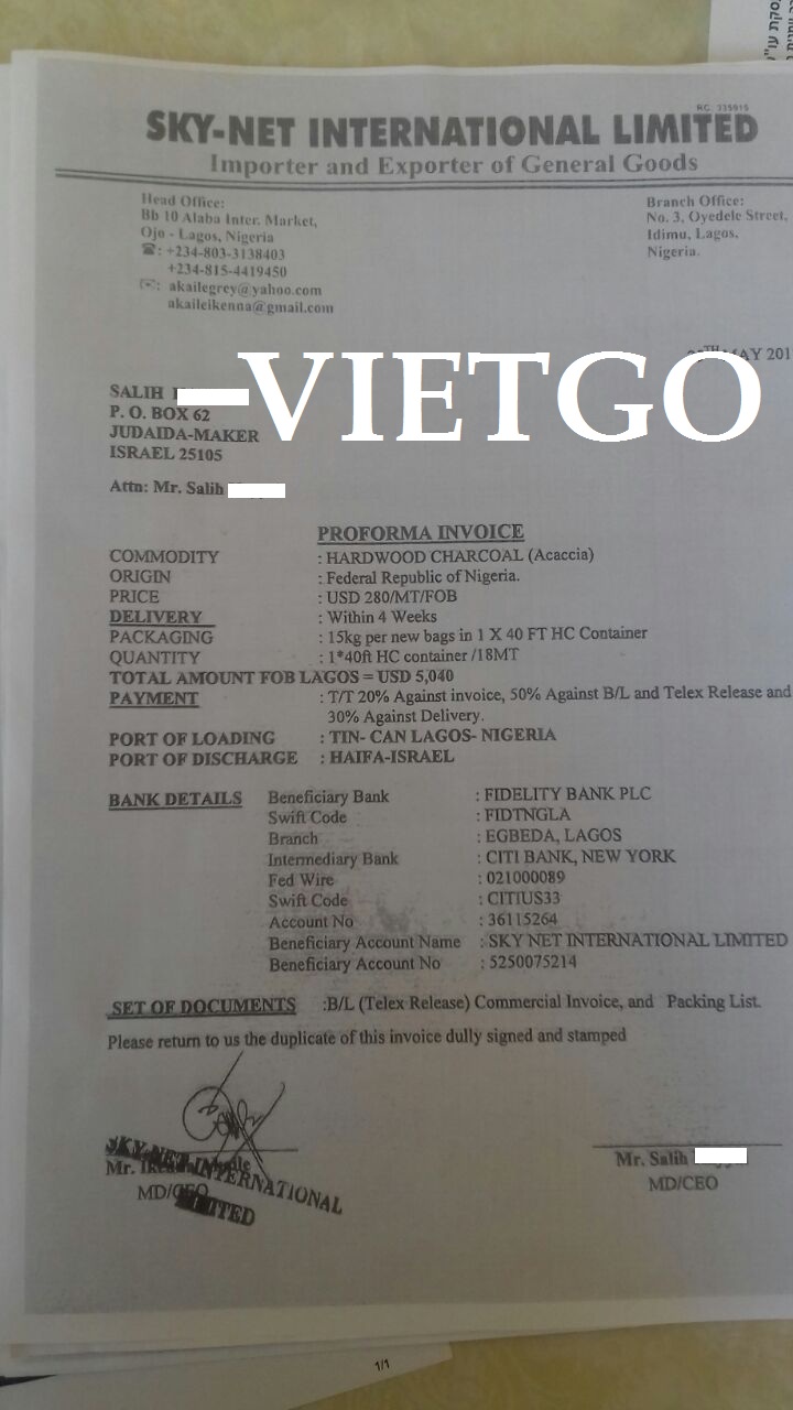 Nếu thành công, đây sẽ là lần đầu tiên chúng tôi nhập khẩu than dừa. Nhưng trước đây công ty tôi cũng đã có rất nhiều kinh nghiệm nhập khẩu các loại than khác. Đây là một vài chứng từ