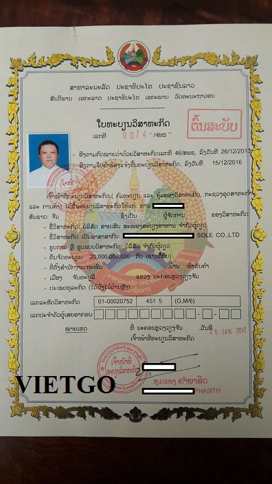 Dưới đây là giấy phép kinh doanh của công ty tôi do chính quyền tỉnh Viêng Chăn cấp phép.