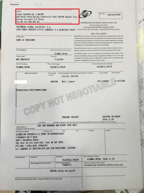 Chuyến hàng áo khoác nam từ Trung Quốc