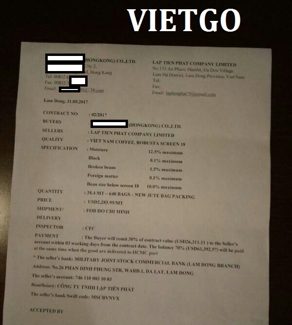 Hợp đồng công ty ██████████ (Hongkong) nhập khẩu cà phê