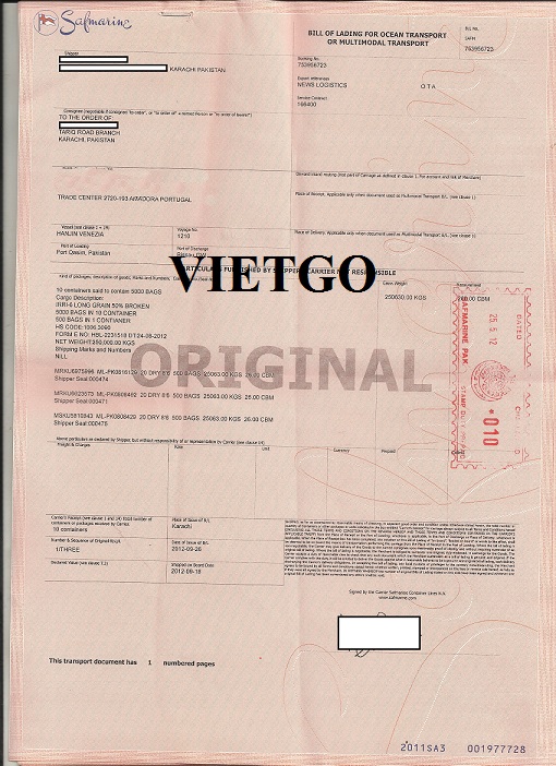 Qua những thương vụ VIETGO đang xúc tiến cho ông Ahmed và nhận thấy công ty của ông là đối tác rất tiềm năng. VIETGO đưa ra chứng từ xuất nhập khẩu đơn hàng gạo IRRI 6 và lúa mì dạng viên nén của ông để quý vị có thể yên tâm đây là khách hàng mua thật và đã có kinh nghiệm nhập khẩu rất nhiều lần