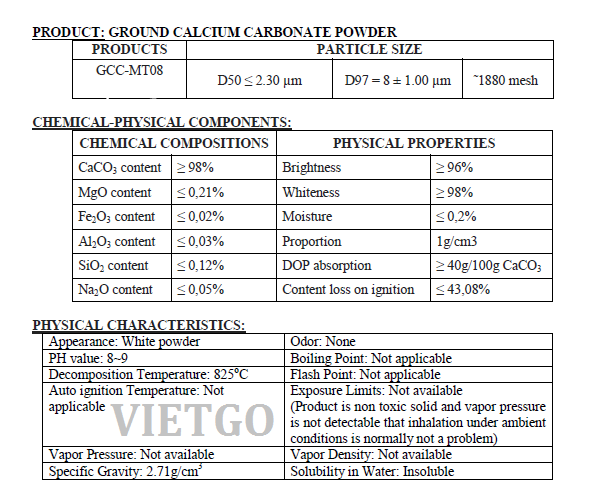 Tên sản phẩm: Bột đá vôi GCC