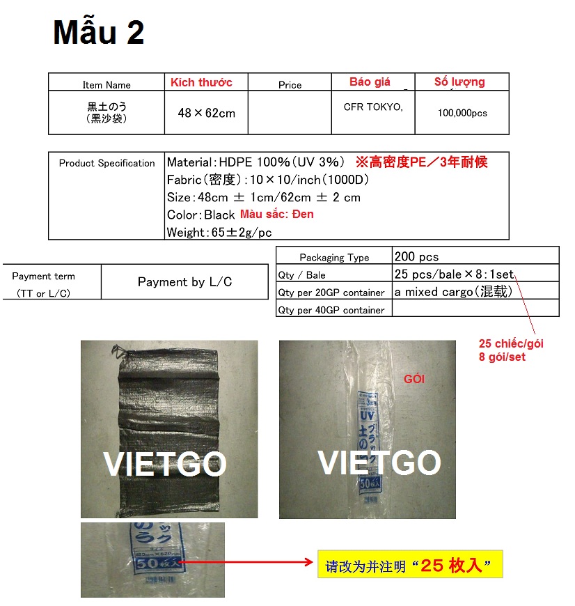 Công ty xây dựng Nhật Bản cần mua số lượng lớn bao dệt.
