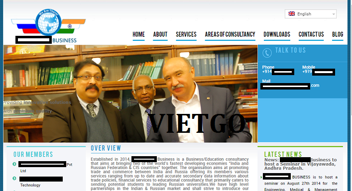 Bên cạnh đó, ██████████ Business cũng tổ chức nhiều buổi hội thảo, triển lãm thương mại, cung cấp dịch vụ phiên dịch, visa, đặt vé, phòng khách sạn, trao đổi sinh viên Ấn Độ sang các trường Đại học danh tiếng ở Nga…