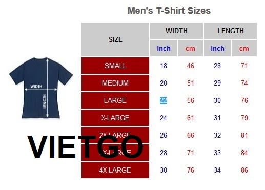 Bảng chi tiết kích thước áo T-shirt