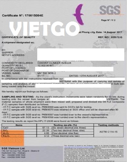 Trước đây chúng tôi tìm đến VIETGO nhờ giới thiệu nhà cung cấp cát. Hiện tại chúng tôi quan tâm tới sản phẩm clinker với đơn hàng để Quý vị báo giá như sau