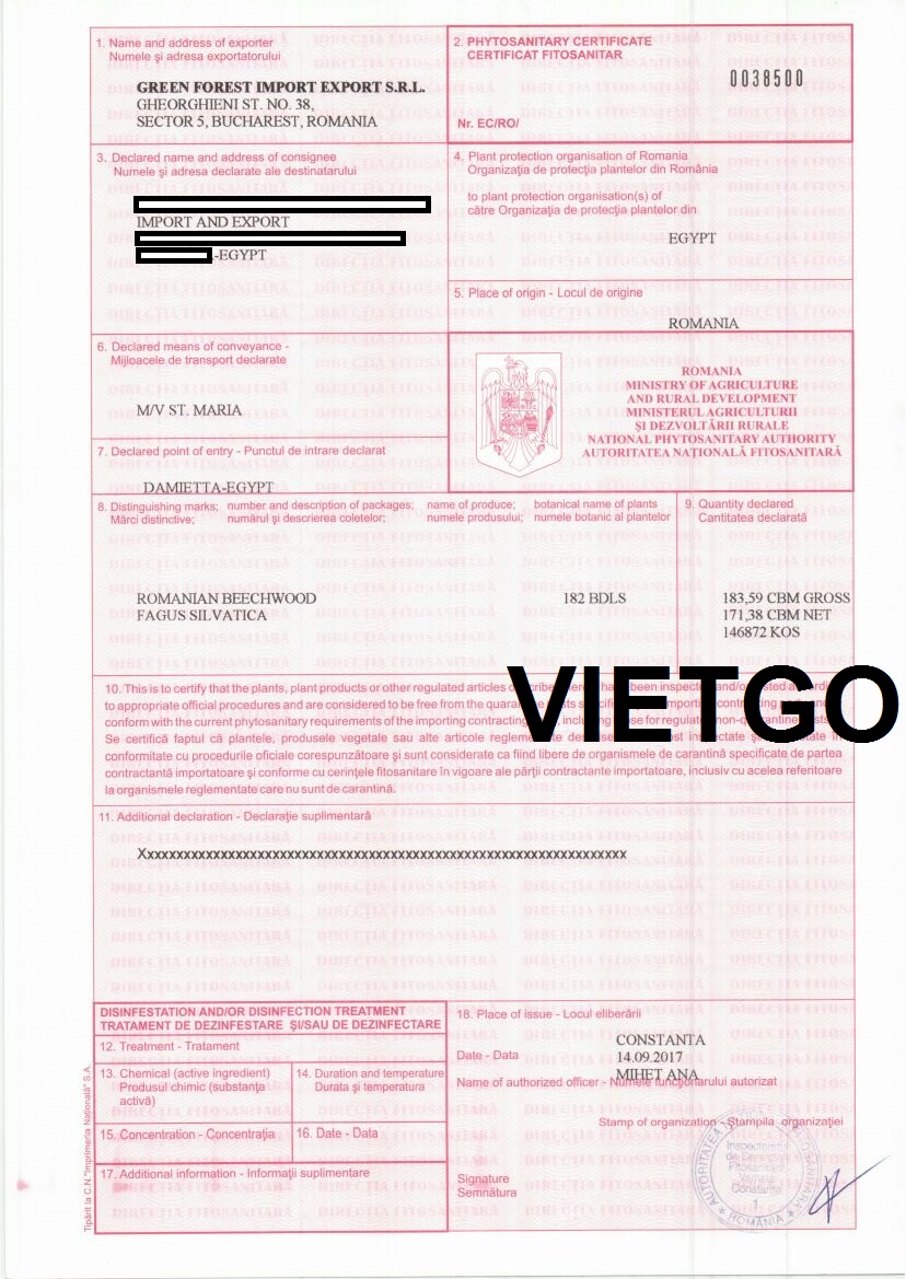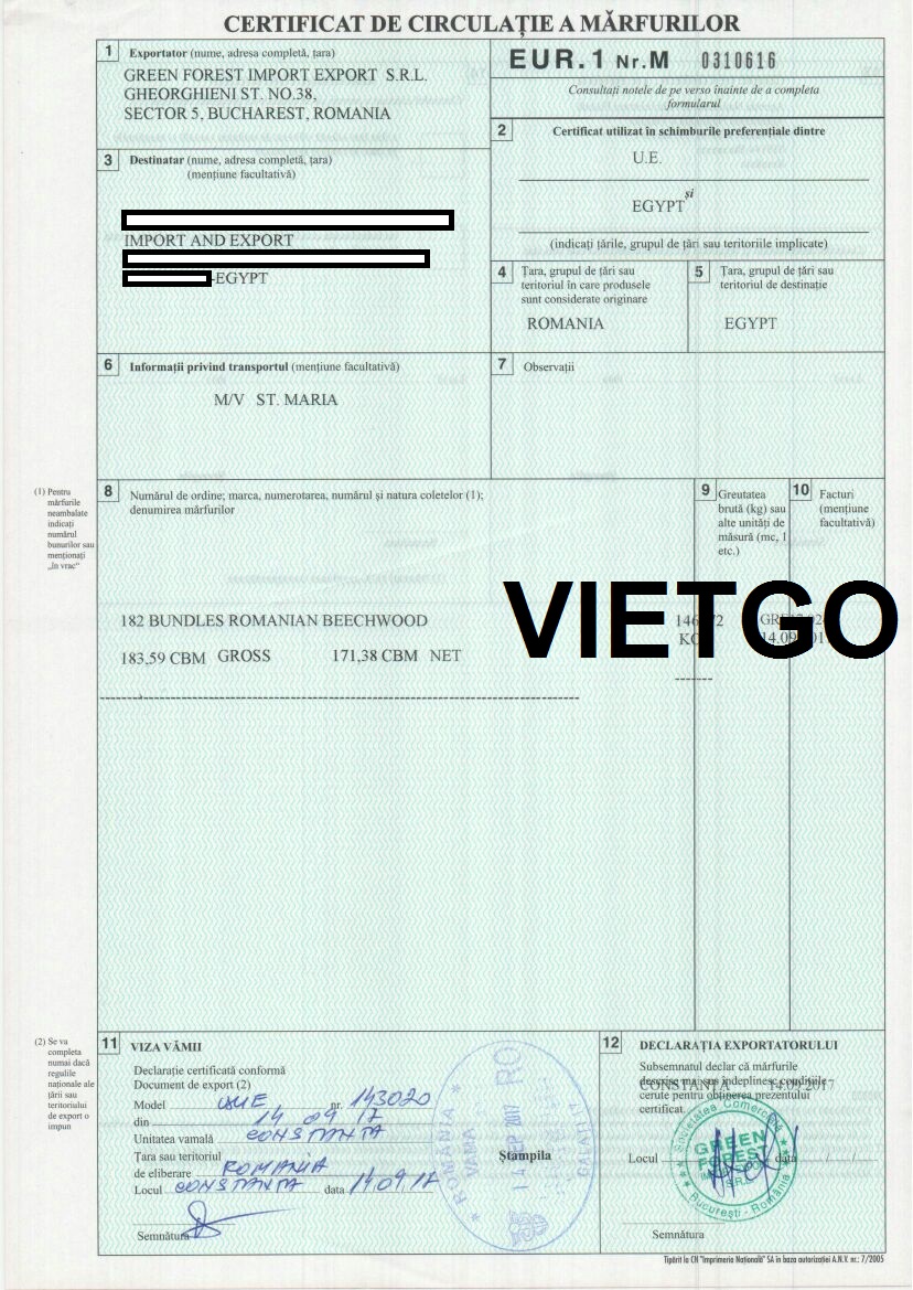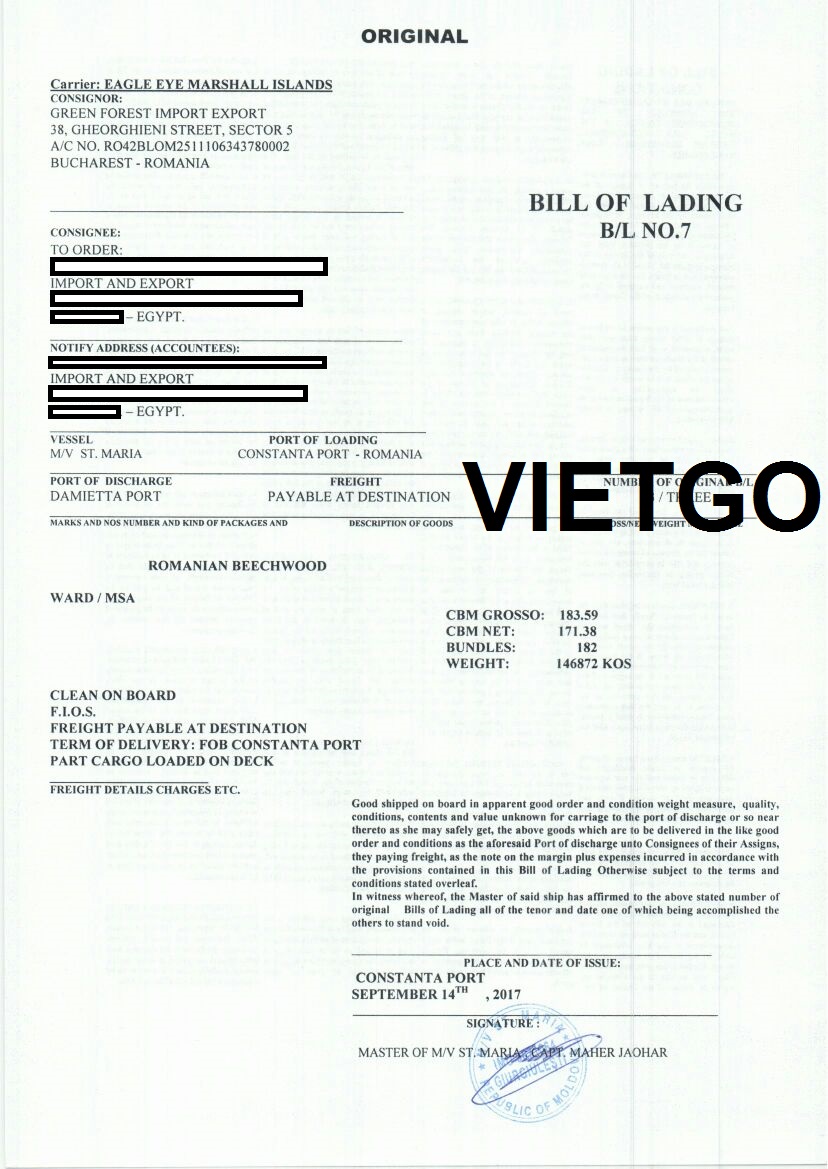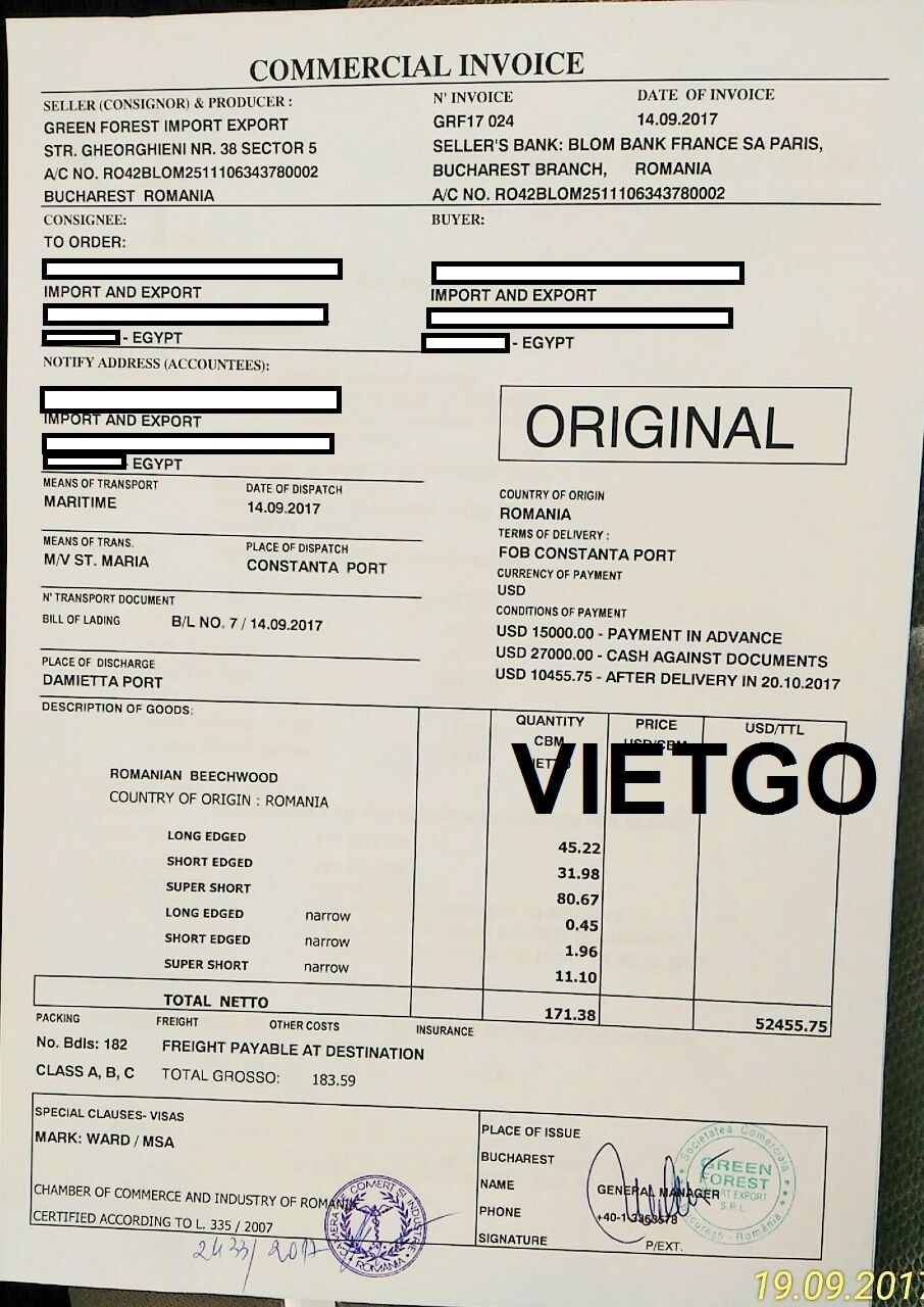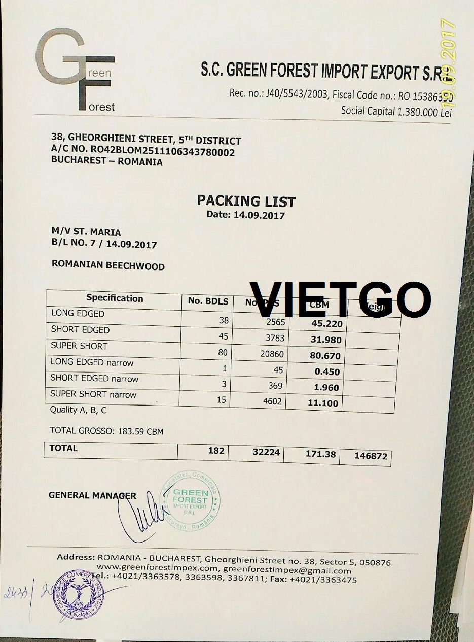 BL nhập khẩu gỗ từ Romania do khách hàng cung cấp