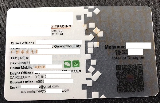 Ông Mohamed là giám đốc đến từ Công ty ████████████████████ Limited. Công ty có trụ sở chính tại Trung Quốc và văn phòng chi nhánh ở Ai Cập, Kuwait