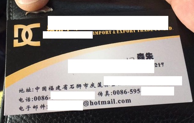 Ông Shaan đến từ ██████████ and Export Trade Co Ltd – là công ty thương mại xuất khẩu các sản phẩm từ Trung Quốc ra thế giới. Các mặt hàng chủ yếu là quần áo, giày và chăn
