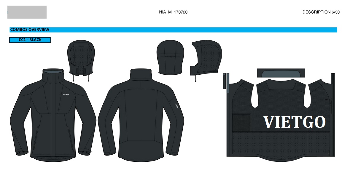 Ông Martin ██████████ là quản lý mua hàng đến từ nhãn hàng vật dụng ngoài trời nổi tiếng ██████████. Hiện ông đang tìm nhà máy gia công áo khoác theo thiết kế. Mời quý vị xem chi tiết đơn hàng ở dưới đây: