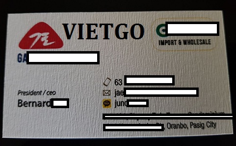 Tôi là Bernard ██████████ đại diện cho công ty GA██████████CO.,LTD đến từ Philippines