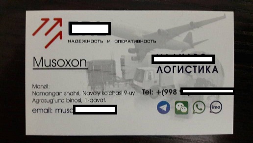 Tôi là Musoxon đại diện cho công ty ██████████TARJIMON có trụ sở tại Uzabekistan